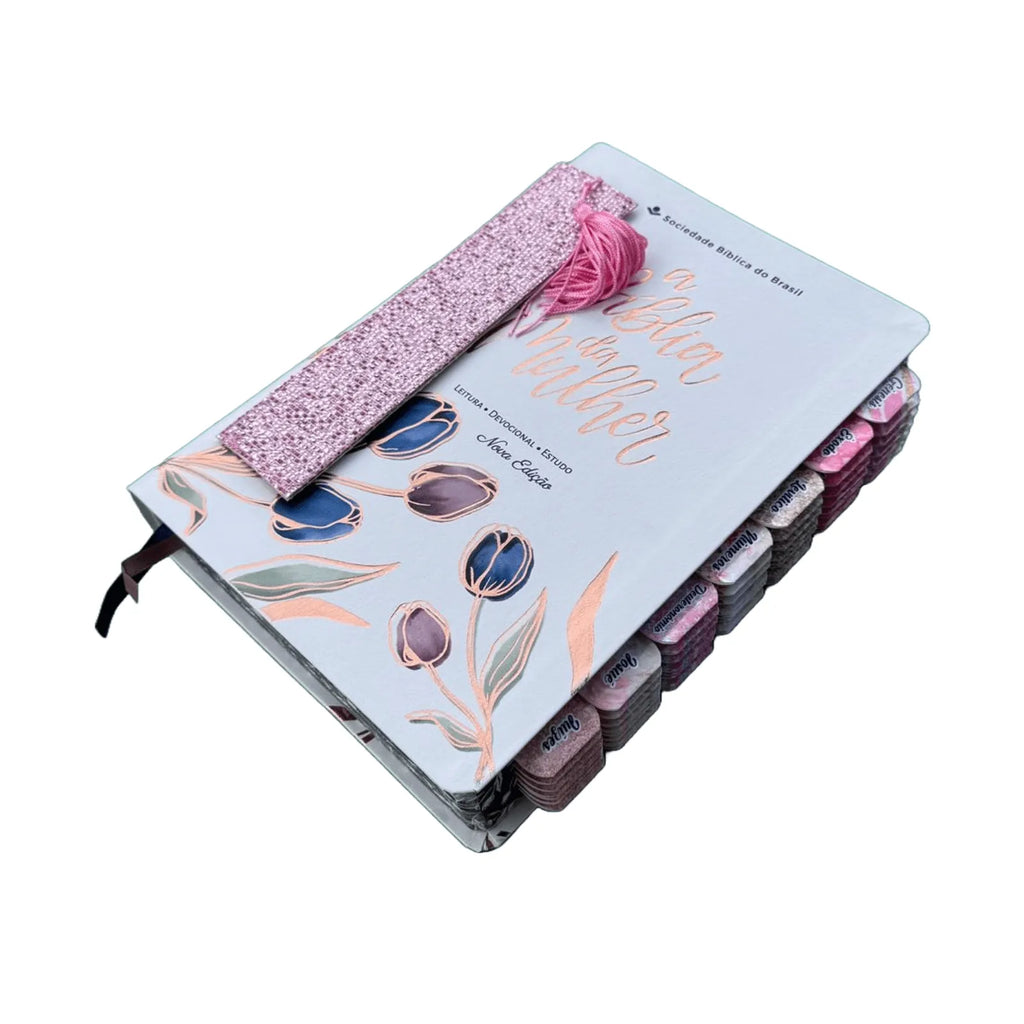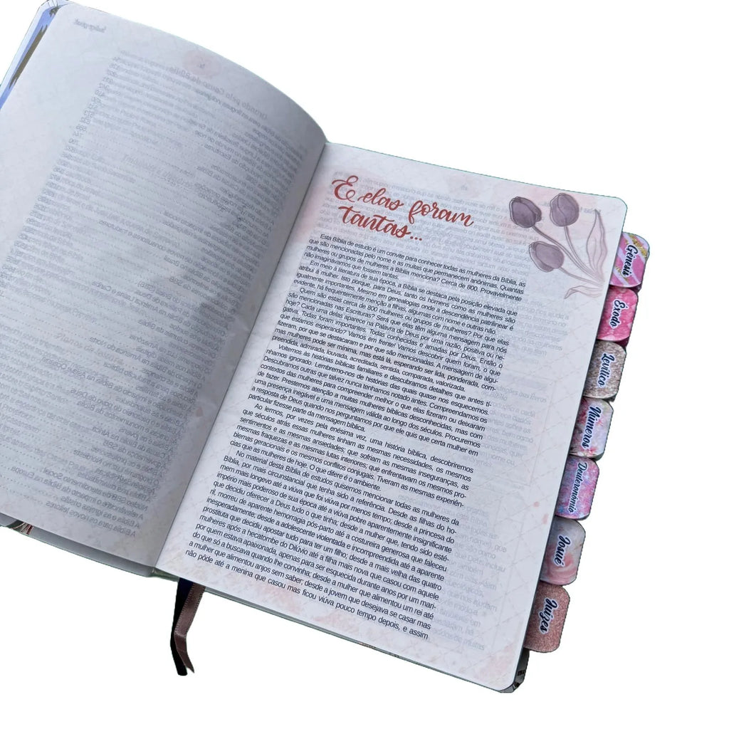 Uma das principais características da Bíblia de Estudo Almeida Revista Corrigida da Mulher Tulipa com Abas são as abas coloridas, que facilitam a localização dos livros bíblicos e tornam a leitura mais prática e dinâmica. Além disso, possui um design moderno e elegante, perfeito para mulheres que gostam de estar sempre na moda.